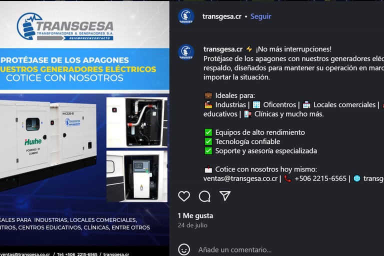 Transgesa ofrece soluciones integrales en transformadores y generadores eléctricos, con asesoría personalizada, equipos certificados y entrega oportuna.